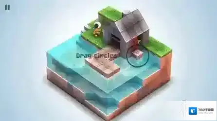 2、接着,翻转场景,此时会出现一个新的圆圈,圆圈内有一个机关,将这个机关移动到地面这边,并踏上它。