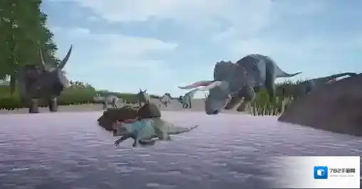 1、选择你的恐龙,从非常弱小的时候开始培养,寻找食物和水源,避免其他肉食恐龙的危险,一步步的将它发展成为庞然大物。