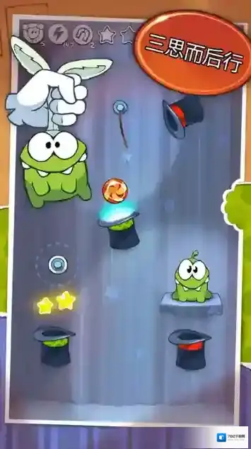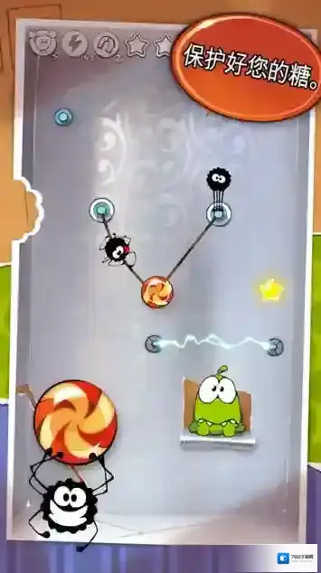 割绳子1(Cut the Rope),非常经典休闲的一款益智闯关游戏,采用了十分清新简洁的卡通画风,画面细腻且精致,操作也是简单易上手,可以轻松的带给你快乐!在游戏中,我们将会看到被绳子系住的糖果,需要通过一些列的操作,借助场景中的各种道具,让糖果最终落入小怪物的嘴里,这样就能顺利过关!除此之外,每一关的场景中还会分布三颗星星,在完成挑战的同时,收集齐三颗星星即可更好的完成关卡,奖励也会更高哦!