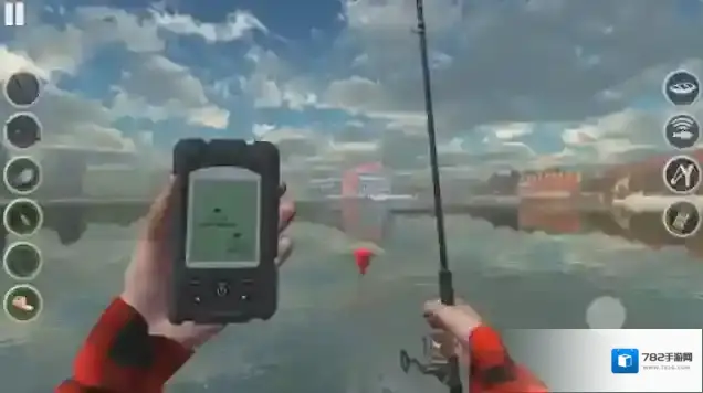 4、找好位置后,双击水面即可抛出鱼线,左上角可以显示浮漂的情况。