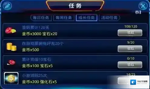 1、按时完成任务,提高活跃度,每天都有机会获得A级和S级球杆的碎片。