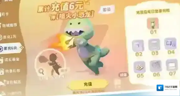 2、累计充值6元,立得喷火小恐龙套装+专属喷火动作。