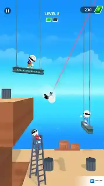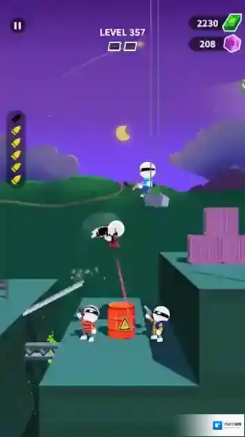 2、每一关遇到敌人后,角色就会自动跳跃,并进入慢动作。