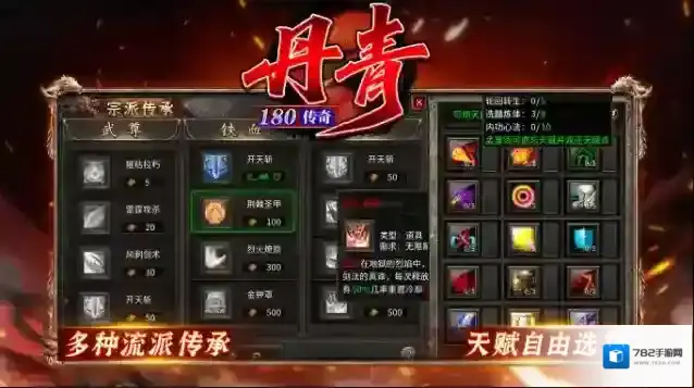 丹青180传奇,复古三职业版本,经典九流派玩法,原汁原味再续情怀!本服拥有百套特殊以及专属装备可以自由的进行搭配,所有的装备均有爆率,花时间你就能够追梦!游戏内每种职业均有三种不同流派,攻略首领级怪物即可获得书页,书页可以用来学习流派技能,提升实力!全新独立天赋系统给你更多激情,完成主线任务可获取天赋点,天赋点可学习天赋技能,无任何氪金门槛,可以免费学满所有天赋!