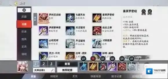 3、第一件装备建议选择七面天女镜,这件装备不仅伤害效果在线,而且对于法力值的回复效果十分出色。