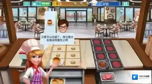 8. 最后,将制作好的汉堡拖动给顾客,顾客满意后即可获得金币奖励。