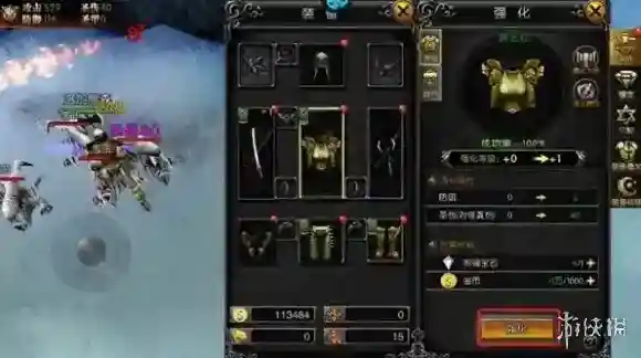 3、点击强化按钮即可对装备进行强化,强化过程需要消耗一定数量的金币和宝石。