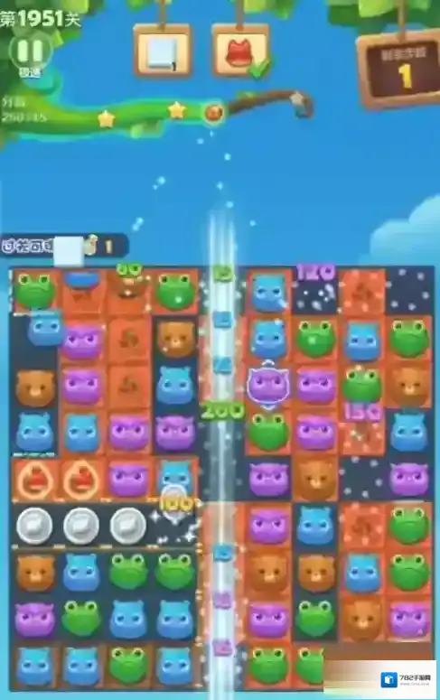 三、地鼠周赛免费赠送的直线爆炸特效点击上。开始互换底部的横向特效,收集两个强制交换道具。在上面组魔力鸟和直线特效或爆炸特效互换,两只红染色球很快跳动。红染色球在传送带移动到左边第二格,用强制交换把红染色球移下。另一只红染色球移动到最右边,用另一只强制交换移动到下面。精力瓶互换银币,两只红染色球并列在一起,互换双红染色球,红狐狸收集完。特效还差几个,组鸟加特效互换,收集完特效。3星分数8万分,过关剩两三步,一般都可以3星。