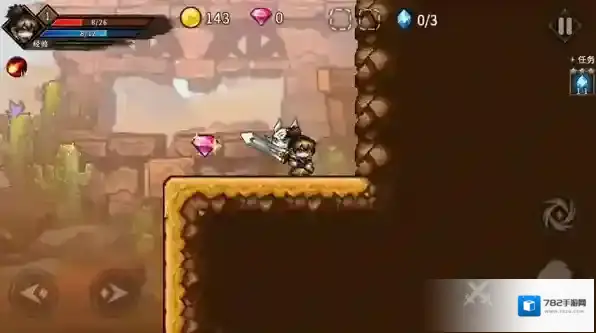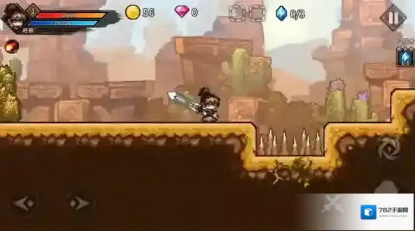 4、选好关卡后就会正式开始,正式开始后左边控制左右方向,右边是跳跃、普攻和技能按键。