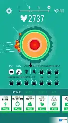 3、每一次几种星球都会获得金币,可以用来升级自己的各项属性。