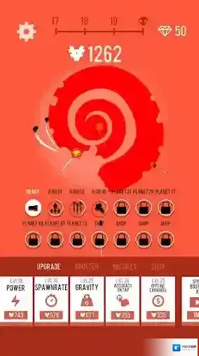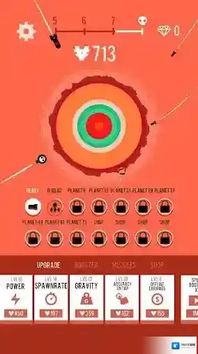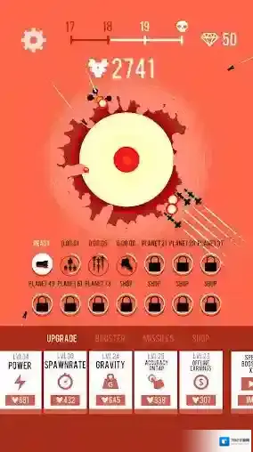 3、将行星摧毁后,你可以升级你的飞船和导弹向着其他星系进行攻击,还可以解锁全新的关卡。