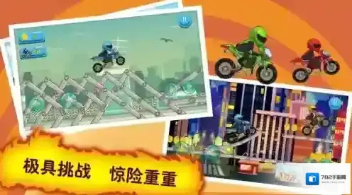 1、冒险竞速模式,玩家可以在诸多赛道上进行挑战,以技术为核心,灵活操作摩托车迎接各种险峻的障碍和考验。